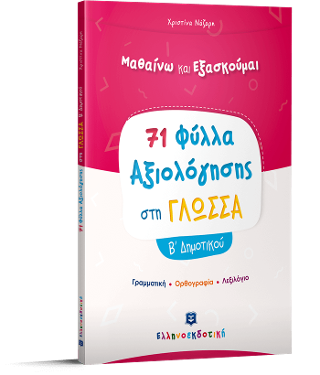 Το βιβλίο Φύλλα Αξιολόγησης για τη Γλώσσα Β′ Δημοτικού της εκπαιδευτικής σειράς Μαθαίνω και Εξασκούμαιπεριλαμβάνει εβδομήντα ένα (71) Φύλλα Αξιολόγησης με ασκήσεις πάνω στα γραμματικοσυντακτικά φαινόμεναπου εξετάζει το σχολικό βιβλίο (Βιβλίο